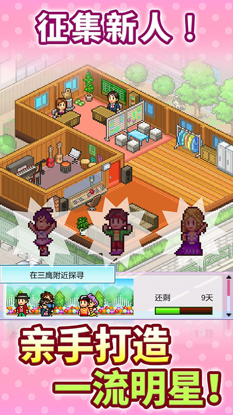 百万进行曲经营一家娱乐公司,挖掘并培养潜力新人,通过安排培训、制作唱片、开演唱会等方式提升艺人知名度。游戏玩法丰富,包括角色养成、销量冲刺、课程安排等,自由规划艺人发展路径,打造专属明星帝国。