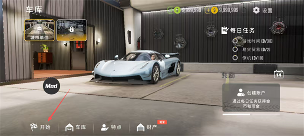 2、买好车后,点击‘开始’键,从列表里选游戏模式。