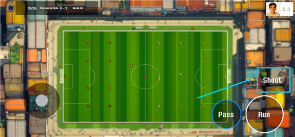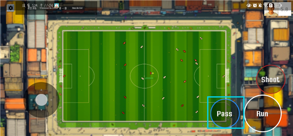 1、比赛开场由你发球,用左侧摇杆掌控方向,轻点‘shoot’键将球踢出。
