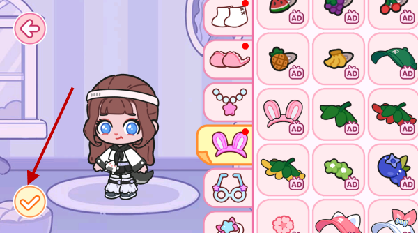 4、装扮好后点击左下角的对号进行保存