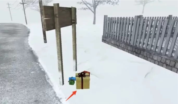 7、大街上带有游戏名称的立牌下(共4份礼物)
