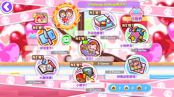 除了当店内的小帮手、开店扮家家、大脑体操等,烹饪以外的游戏也很充实。有超过30种以上饱含趣味性的游戏正等着你。试试挑战看能获得怎样的高分吧!