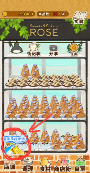 4、回到游戏,丰收季的时间就会被刷新啦。这个时候街记事不会更新,商品没办法售卖。点击左下角的小蓝鸟,看广告,看完广告,店铺里的商品会立刻售罄。再去制作商品,架上的商品就可以售卖了。