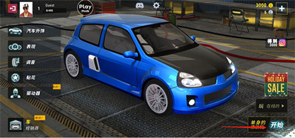 2、买完车,再轻点右下角那个醒目的开始按钮,就能进入游戏主界面啦。
