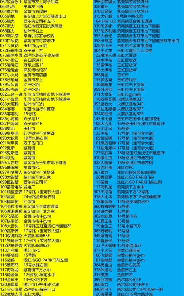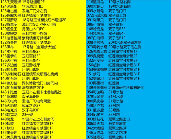 黄色为图鉴顺序排序 蓝色为地图区域排序