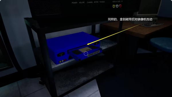拿到磁带后,放到右边的录像机中,观看视频(可以跳过)