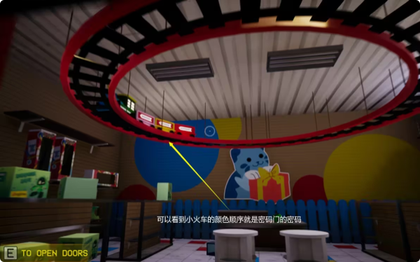 密码就是房间内小火车的颜色排序(绿粉黄红)(密码是固定的)