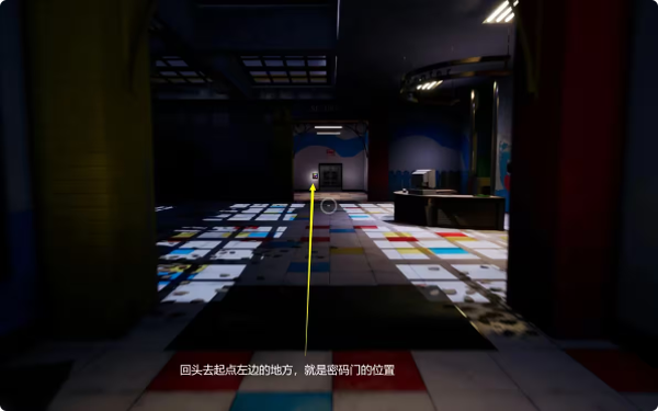 密码在起点右方的小房间内(不想去也可以直接输入密码 绿粉黄红 ,密码是固定的)