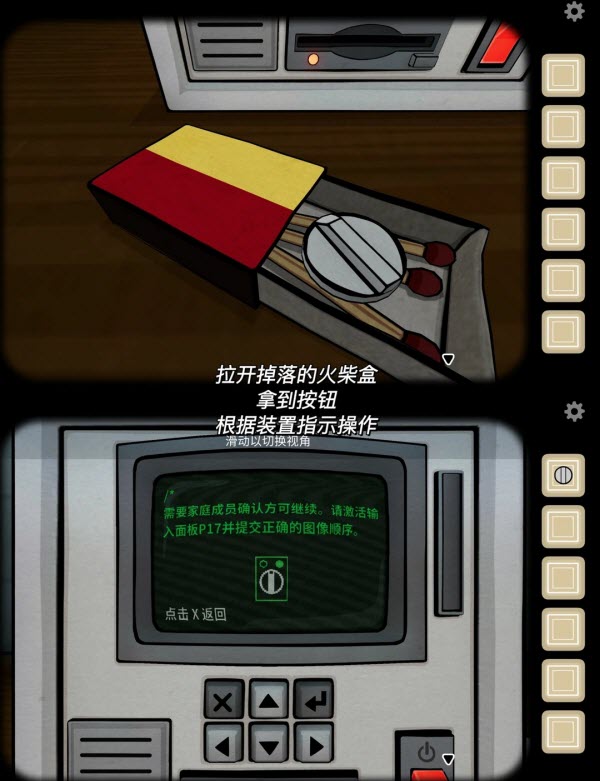 3、拉开掉落的火柴盒,拿到按钮,根据指示操作