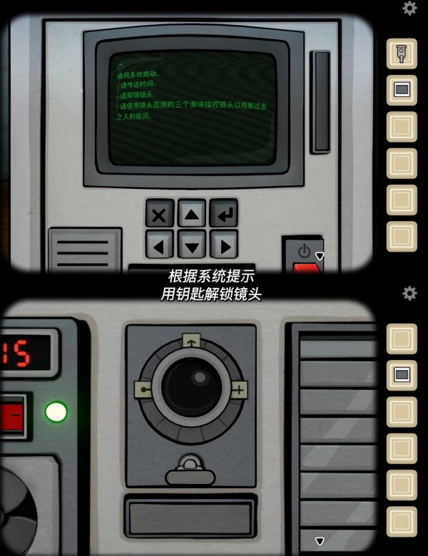 7、根据系统提示,用钥匙解锁镜头