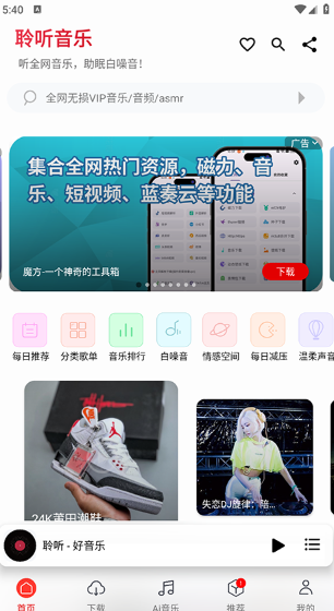 聚合全网音源,无损音质免费下,听歌体验拉满~
