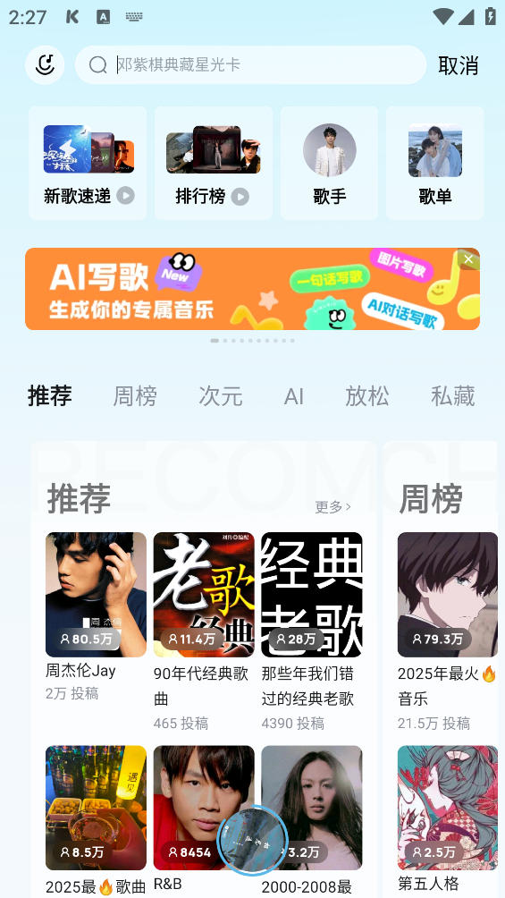 集听歌、K歌、于一体的全能型音乐娱乐平台~